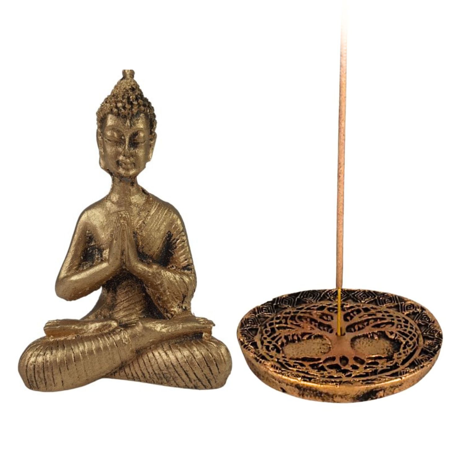 Buda Hindu Resina Durado e Incensário Árvore da Vida