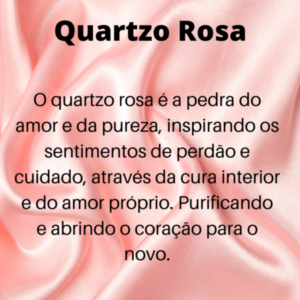 Também conhecida como a pedra do amor-próprio, o Quartzo Rosa é ligada diretamente à energização. Transmite amor e felicidade, sendo indicada para atrair boas energias na amizade e felicidade, agindo direto no chakra do coração. Emite uma energia tranquilizadora restabelecendo uma ordem funcional no campo energético como um todo.